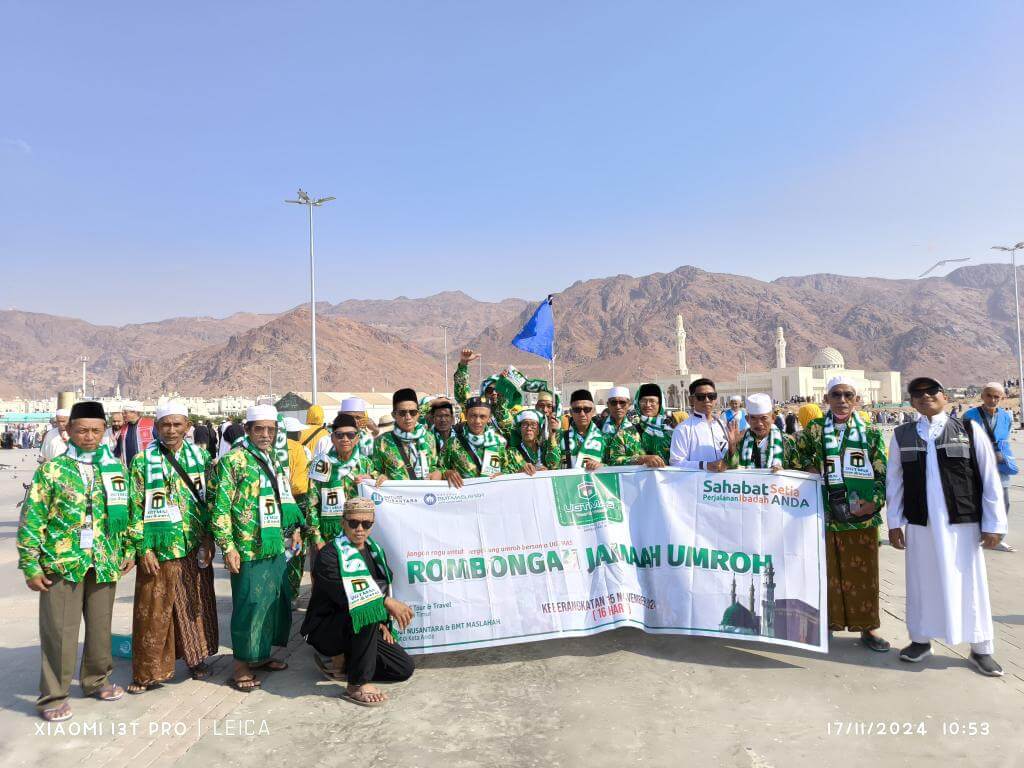 Ahad 17 November 2024, Jamaah umrah UGTMAS melaksanakan program city tour di kota Madinah, meliputi: Masjid Quba’, Jabal Uhud dan Kebun Kurma, kedua group rombongan ini didampingi KH. Muhith Arfa’i, Ustadz H. Hasan Hasyim sebagai tour leader, juga Ustadz Kholilurrahman sebagai tour guide.
