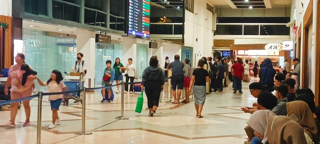 SURABAYA – Rombongan jamaah umrah PT UGT Mastour and Travel kloter 2, yang berangkat pada 21 Desember 2024 dengan paket perjalanan 12 hari, tiba di Bandara Internasional Juanda, Terminal 1, Rabu (1/1). Semula dijadwalkan mendarat pukul 18.30 WIB, pesawat akhirnya landing pada pukul 18.53 WIB. Keterlambatan itu diduga akibat kondisi cuaca.