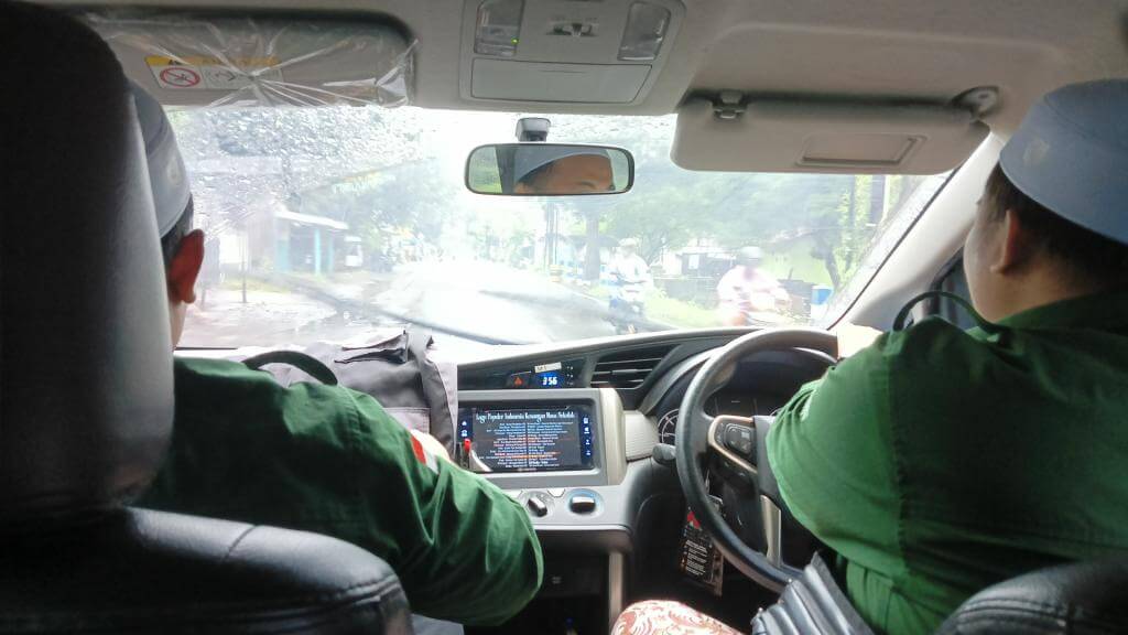 Tim UGTMAS memulai perjalanan dari kantor menuju bandara dengan penuh semangat meski cuaca kurang bersahabat. Dalam perjalanan tersebut, tim juga melaksanakan tugas tambahan, yakni mengantarkan perlengkapan kepada calon jamaah di Kabupaten Sidoarjo.