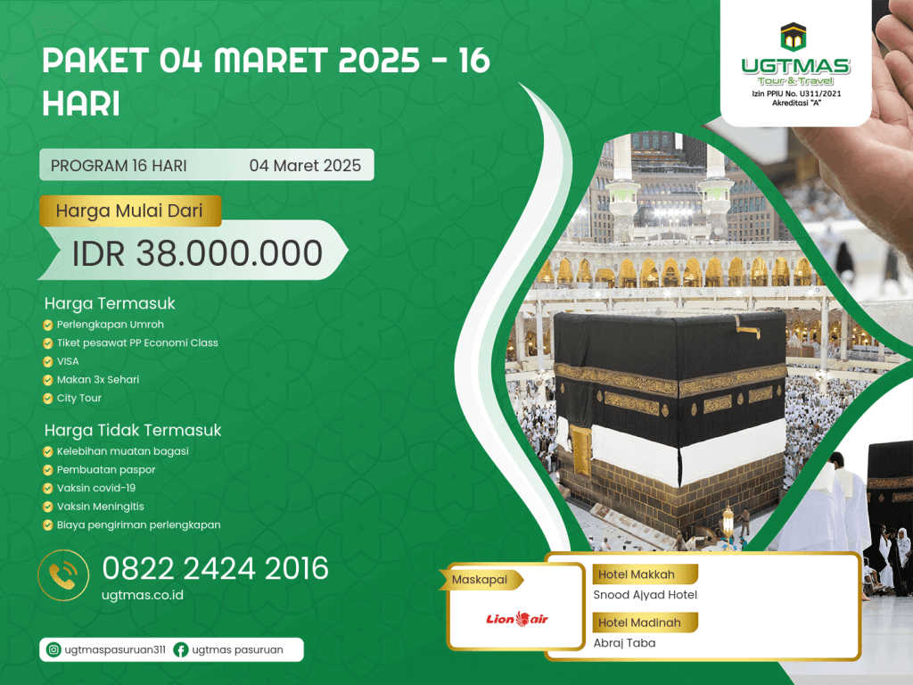 - Penggantian tanggal / program perjalanan boleh dilakukan minimal H-15 pemberangkatan.