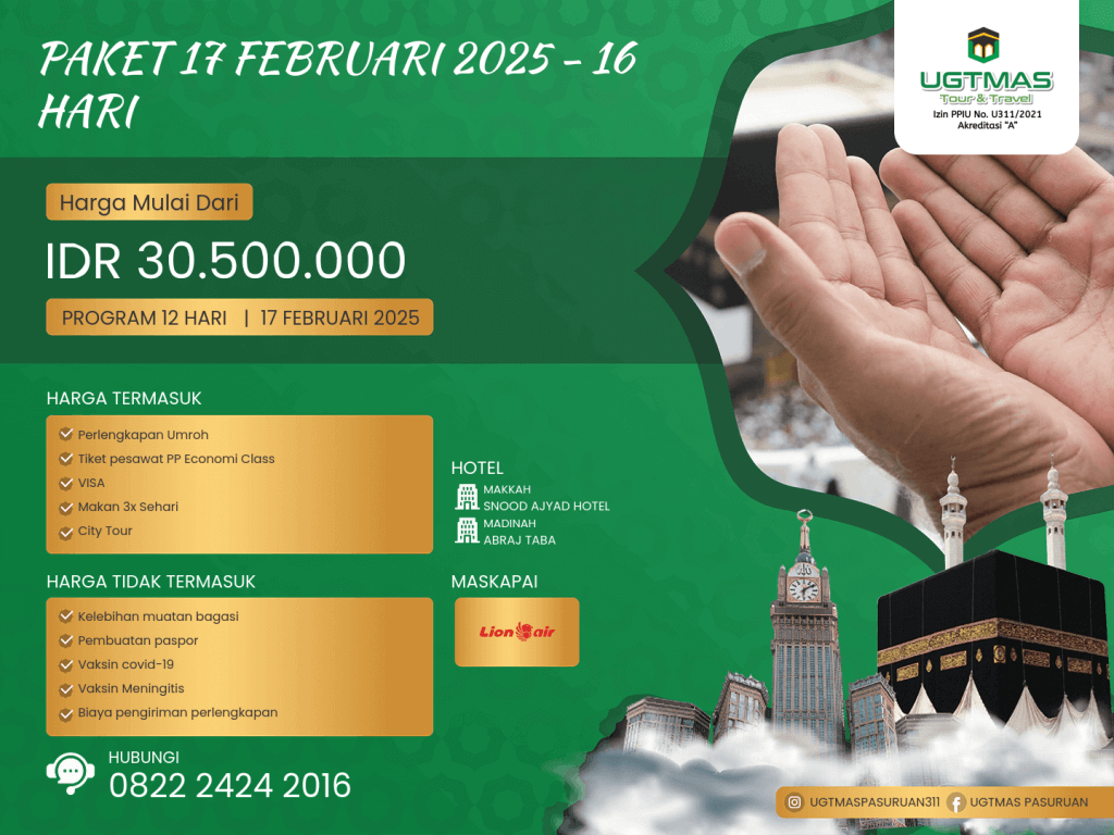 - Penggantian tanggal / program perjalanan boleh dilakukan minimal H-15 pemberangkatan.