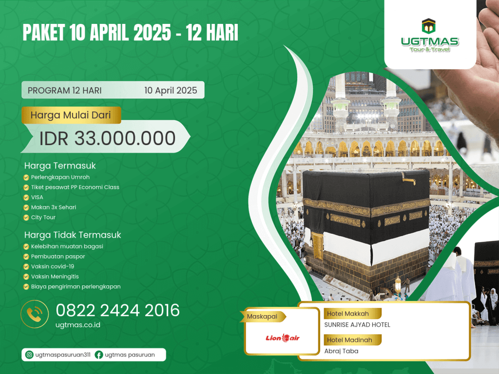 - Penggantian tanggal / program perjalanan boleh dilakukan minimal H-15 pemberangkatan.